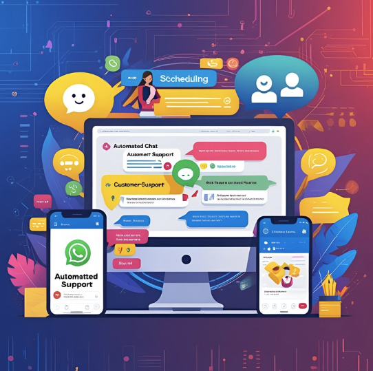 Asistentes virtuales que responden automáticamente en WhatsApp, web o redes sociales. Atienden clientes, resuelven dudas, agendan citas y venden sin intervención humana, las 24 horas del día.